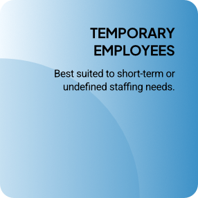 Whether you’re covering seasonal demand, employee leave, special projects, or periods of rapid growth, our temporary staffing solutions provide skilled professionals who are ready to step in and contribute immediately. We handle sourcing, vetting, and onboarding—so you get reliable support without the long-term commitment.